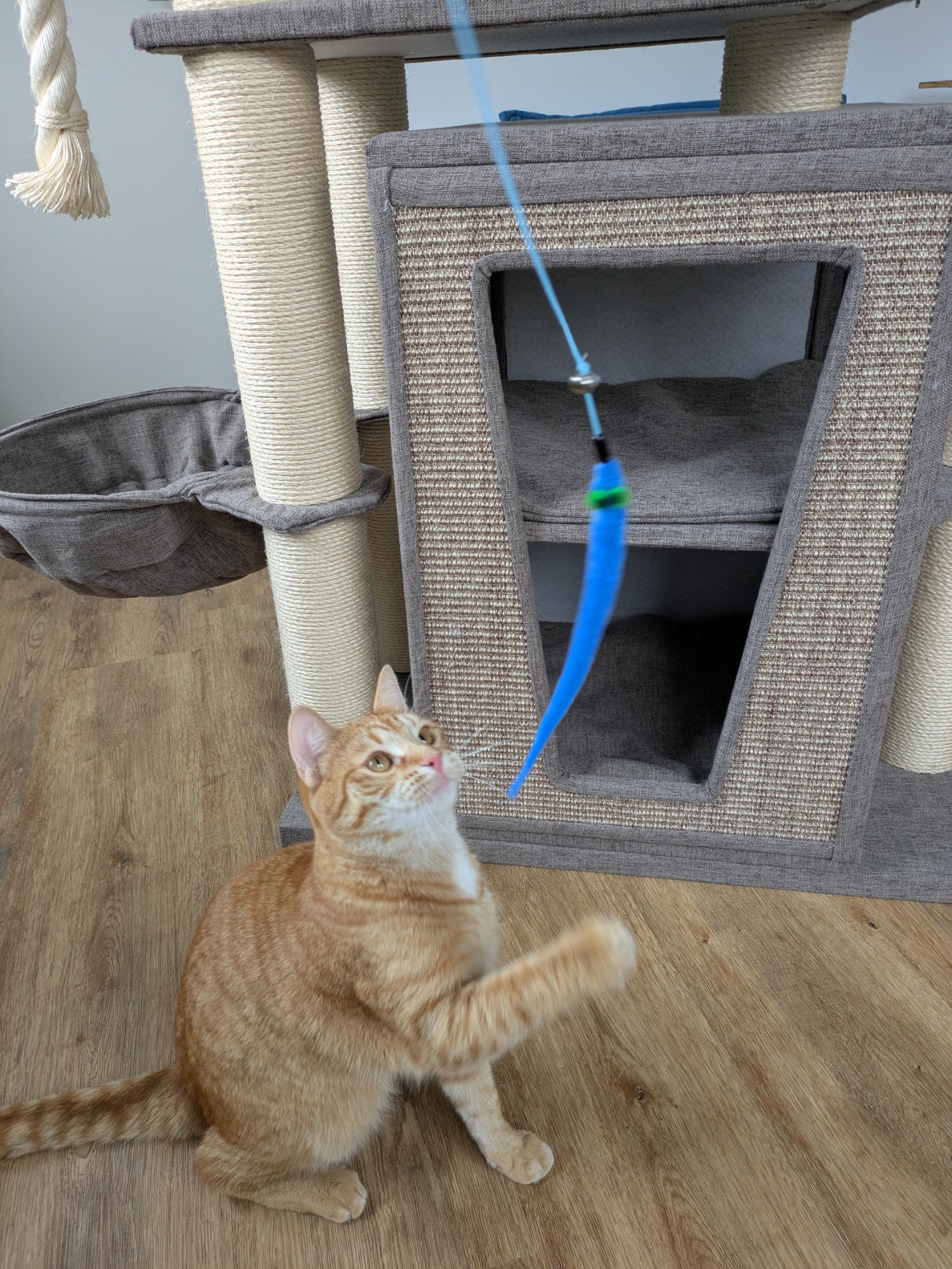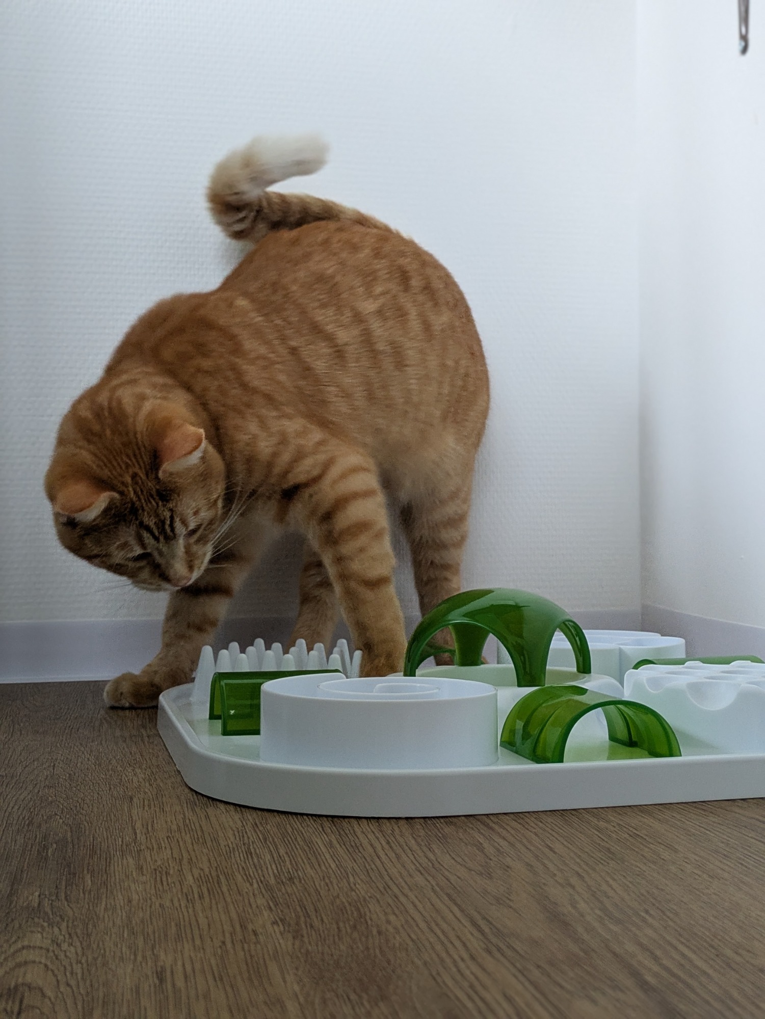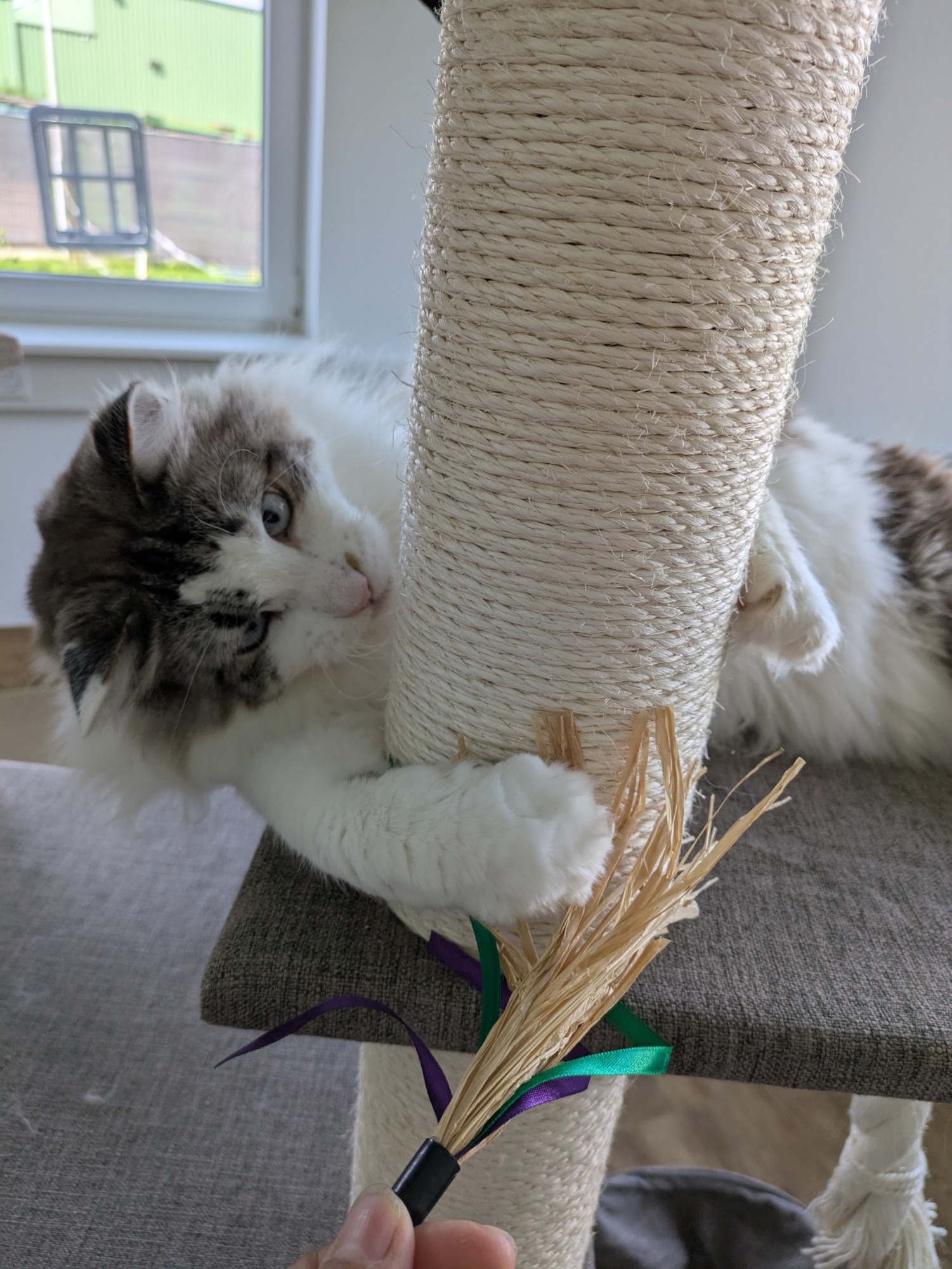 Ausstattung: Doppeltes Tageslichtfenster, Kratzbaum mit unterschiedlichen Ebenen sowie Liege- und Versteckmöglichkeiten, Catwalk zum erhöhten Liegeplatz, Heizungsliege, offene und geschlossene Katzentoilette, Wahl zwischen Trinknapf oder Wasserbrunnen, diverse Spielzeuge