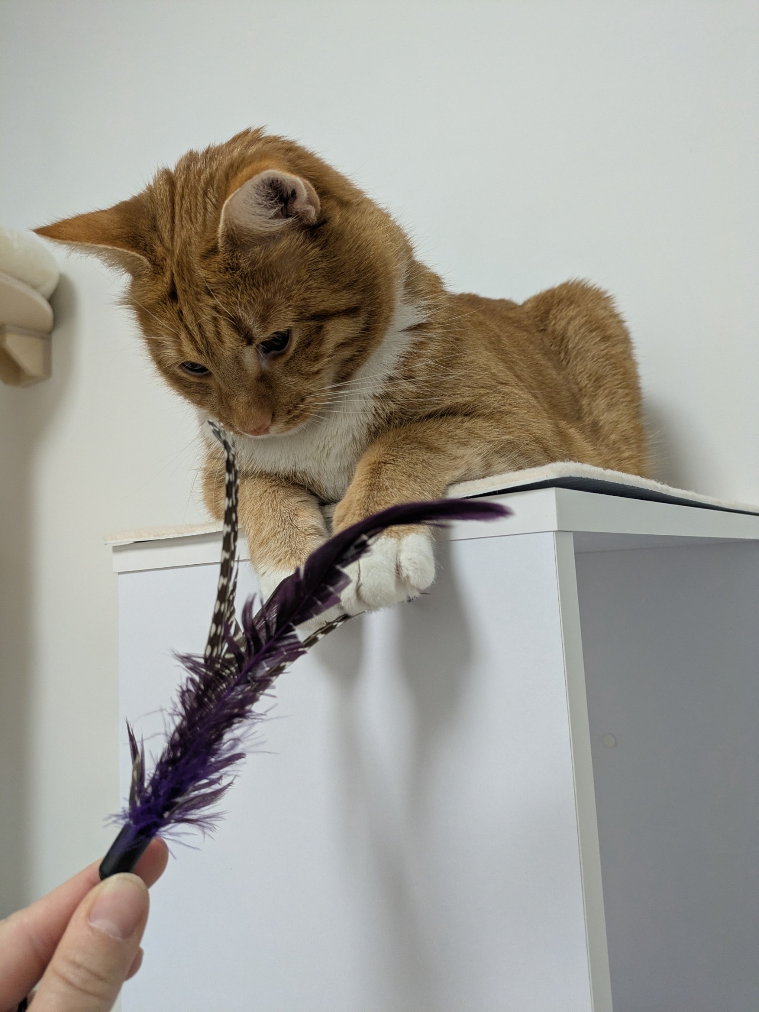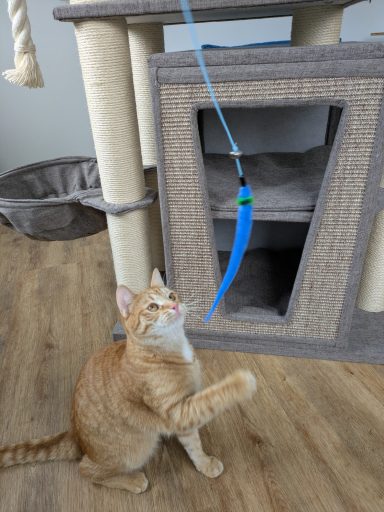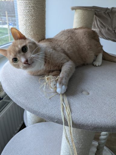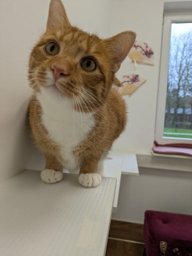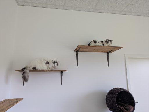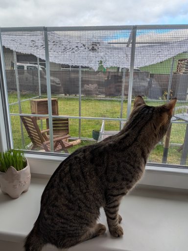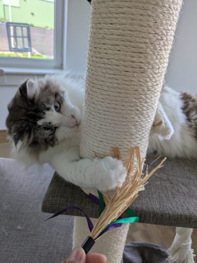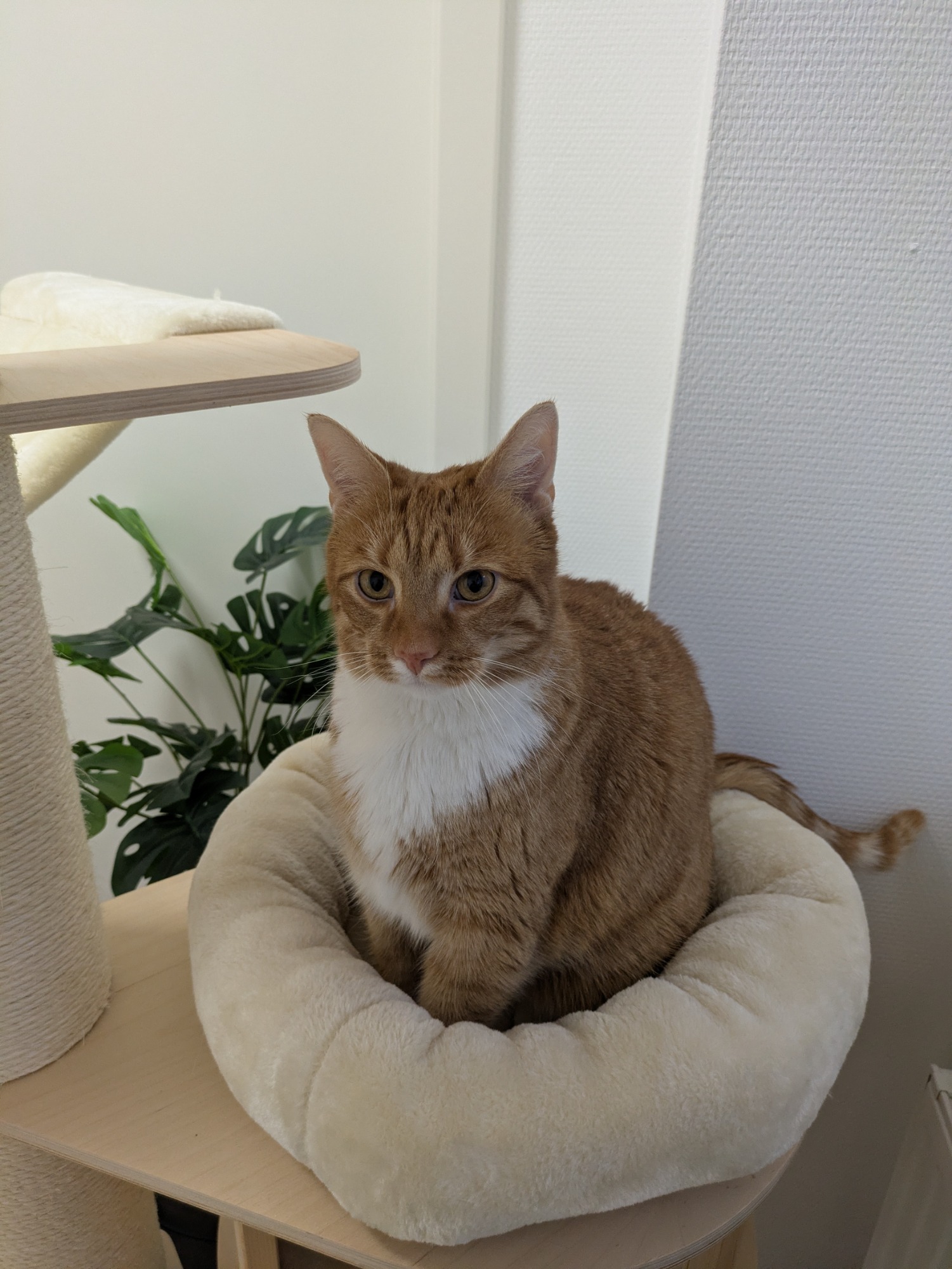 Ausstattung: Doppeltes Tageslichtfenster, zwei Kratzbäume mit unterschiedlichen Ebenen sowie Liege- und Versteckmöglichkeiten, Heizungsliege, Treppe zur Fensterbank, Freigang ins Katzengehege, mehrere Katzentoiletten, Wahl zwischen Trinknapf oder Wasserbrunnen, diverse Spielzeuge